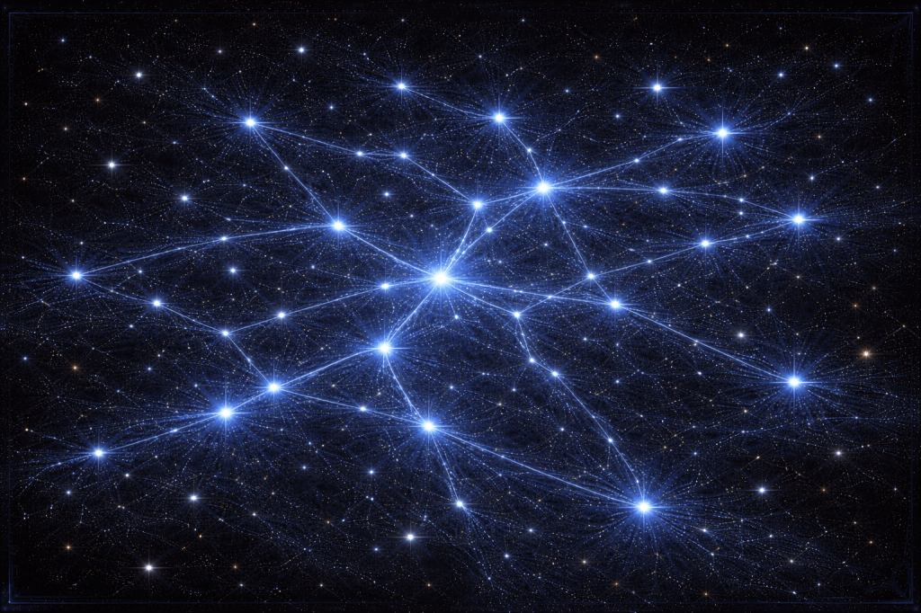 Entre las formaciones del cielo narrativo existe una constelación particularmente apreciada por los observadores del monasterio. Sus estrellas parecen dibujar una red de senderos que se cruzan, se separan y vuelven a encontrarse, como si representaran múltiples rutas posibles.