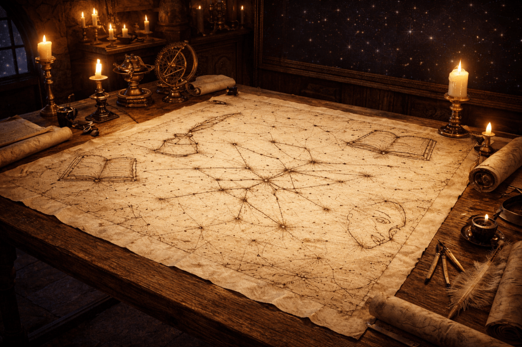 Quienes trabajan en el monasterio saben que no se trata únicamente de un firmamento de estrellas. A lo largo de los años, los observadores han descubierto que ciertas constelaciones parecen acompañar los movimientos del universo de las historias.
