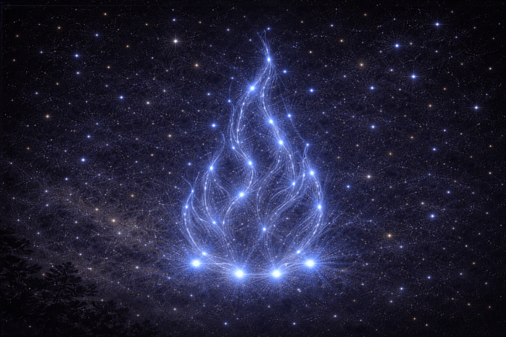 Sus estrellas dibujan la forma de una llama suspendida en el cielo nocturno.