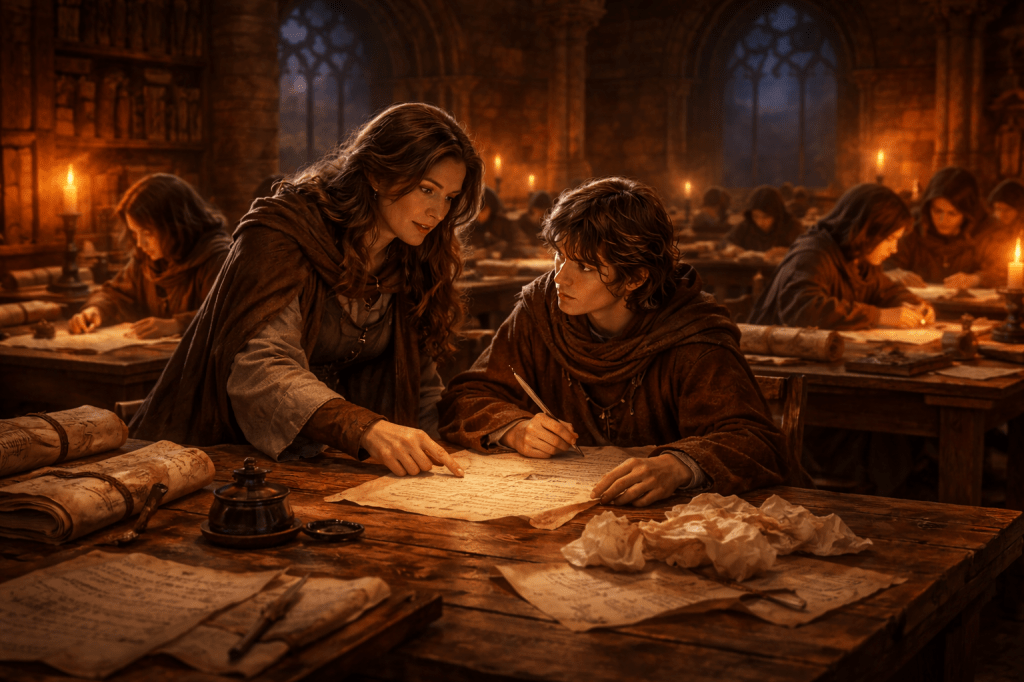 Por eso, cuando una narración parece no avanzar, los instructores suelen recomendar algo curioso: abandonar por un momento el Scriptorium.