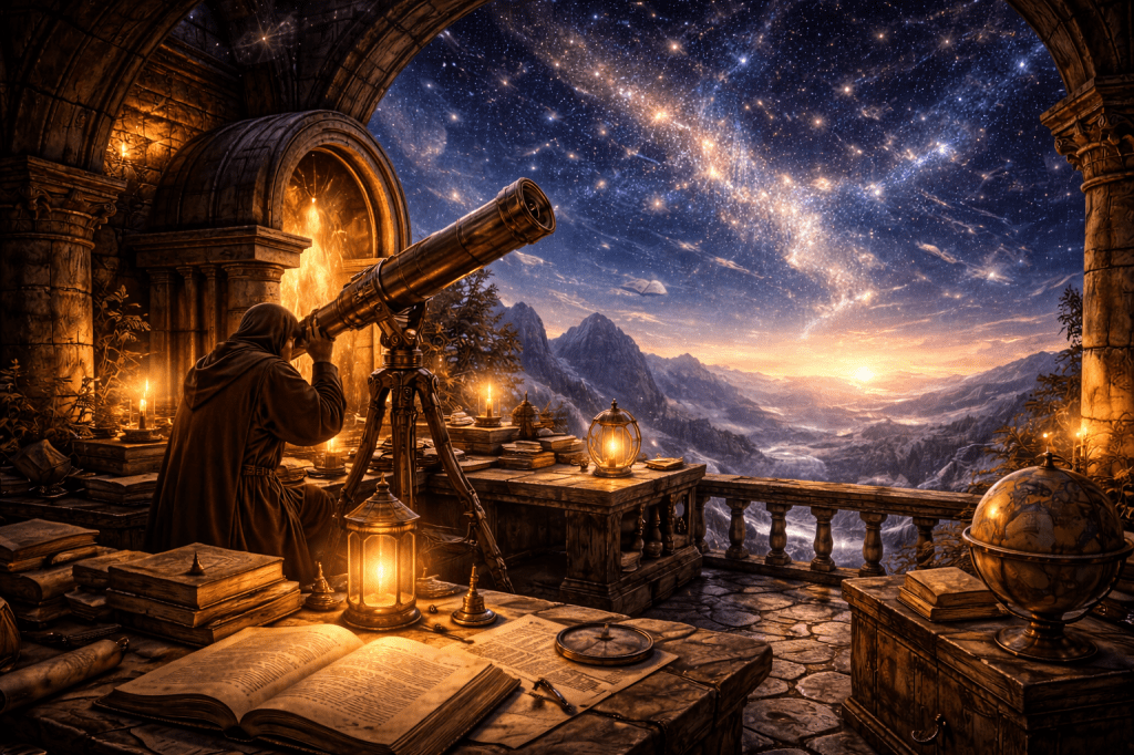 Desde allí se estudian los flujos narrativos del universo: los movimientos de las estrellas, las constelaciones y las señales que el cielo parece revelar a quien sabe observar.